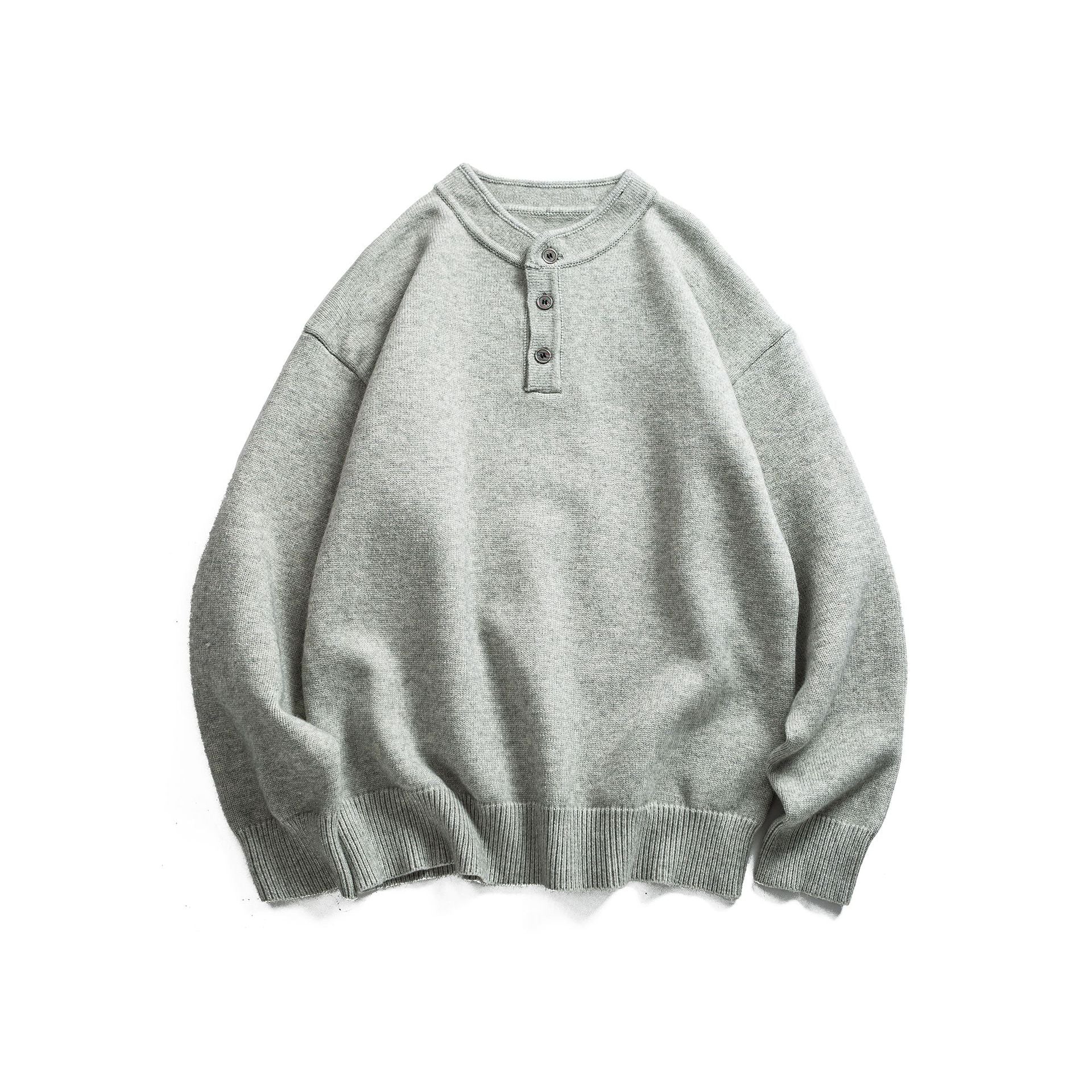 Minimalist Solid Color Henley Neck Loose Casual Versatile Pullover Sweater