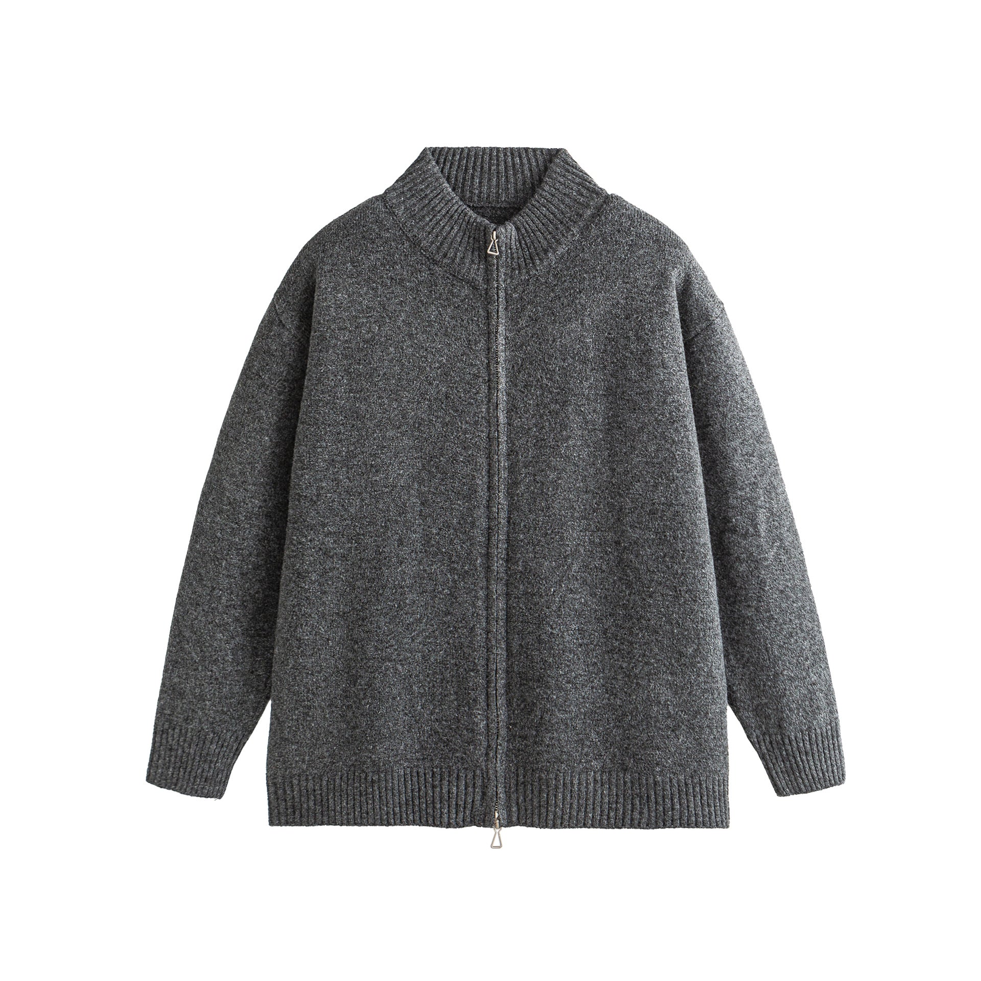 Solid Color Long Sleeve Zipper Loose Fit Cardigan Sweater Jacket