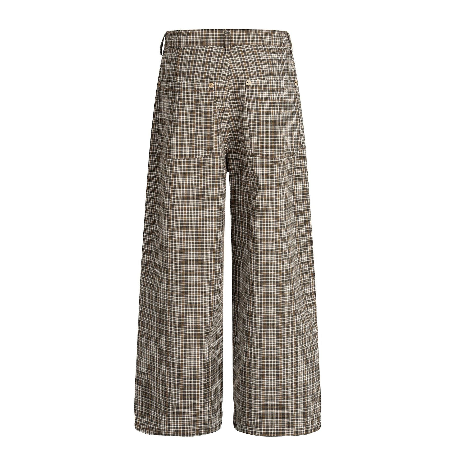 Vintage Street Style High-End Plaid Pleated Trendy Design Loose Wide-Leg Men's Casual Pants